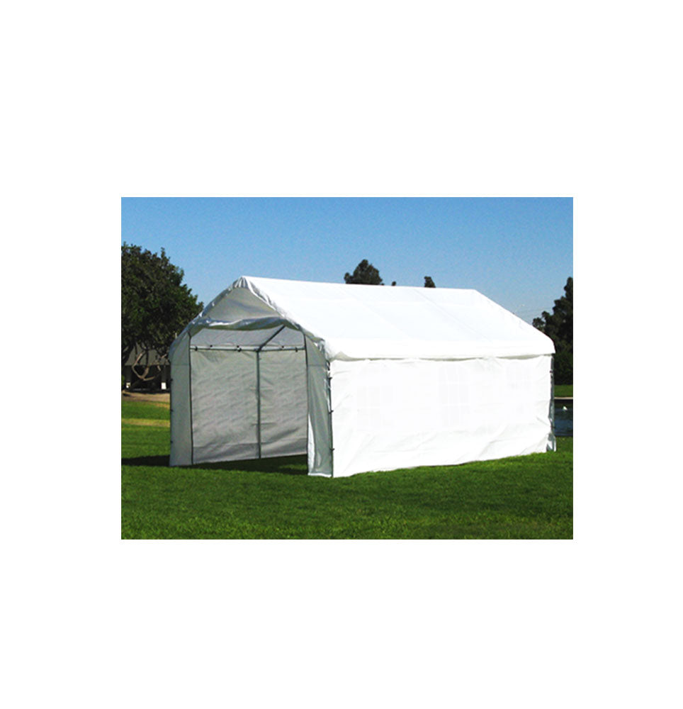 The 20’ x 40’ complete no windows canopy is a high peak “A” shaped frame canopy. The canopy includes a 20’x40’ valance tarp, a 20’ front side, a 20′ back side , two
