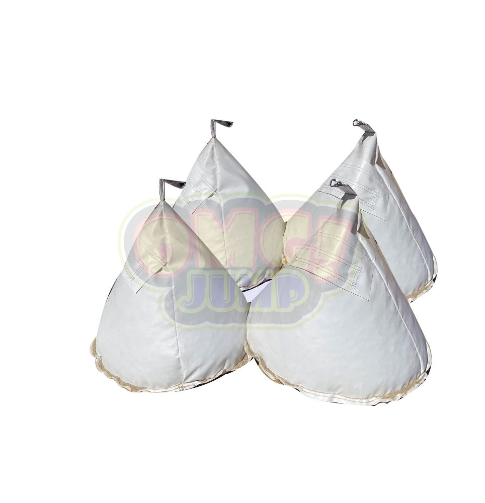Our heavy duty sandbags will secure any inflatable unit whether you have it inside or outside. It is a great alternative for rental customers that do not have any grass or dirt space to set up on. With these sandbags you will be accommodating to any customer’s needs by being able to set up a jumper on any surface. These sand bags are made out of the same vinyl material used for jumpers and include the same reinforced double stitching. These are reusable and reliable and will last you for many rentals. Invest in this product that will have your inflatables secured. These sandbags can also be used to secure any canopy. After installing your canopies you can add sandbags for safety. These sand bags are a lifesaver for windy days. We have the option of 40 lbs sand bags and 80lbs sand bags. The 40lbs sand bags are most commonly used for inflatables and the 80lbs sand bags are most commonly used for canopies. We have a variety of colors for you to choose from to match your inflatables and we have white color available to match your canopies. What it includes: 80Lbs EMPTY sand bag- 1 Piece